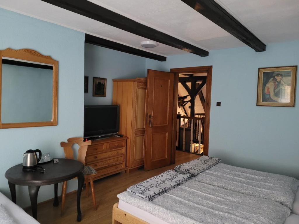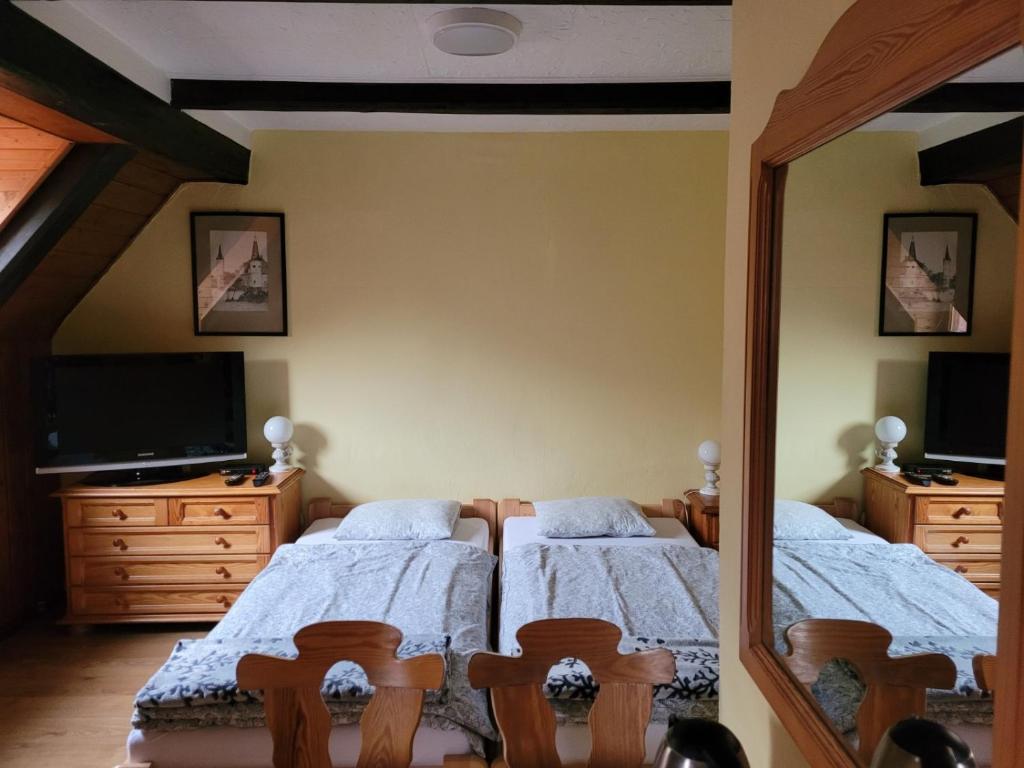 Do dyspozycji naszych Gości oddajemy 14 miejsc noclegowych w komfortowych pokojach jedno-, dwu-, trzy- i czteroosobowych, z których roztacza się widok na góry. Wnętrza urządzone są ze smakiem i dbałością o detale, tworząc przytulną, stylową atmosferę.